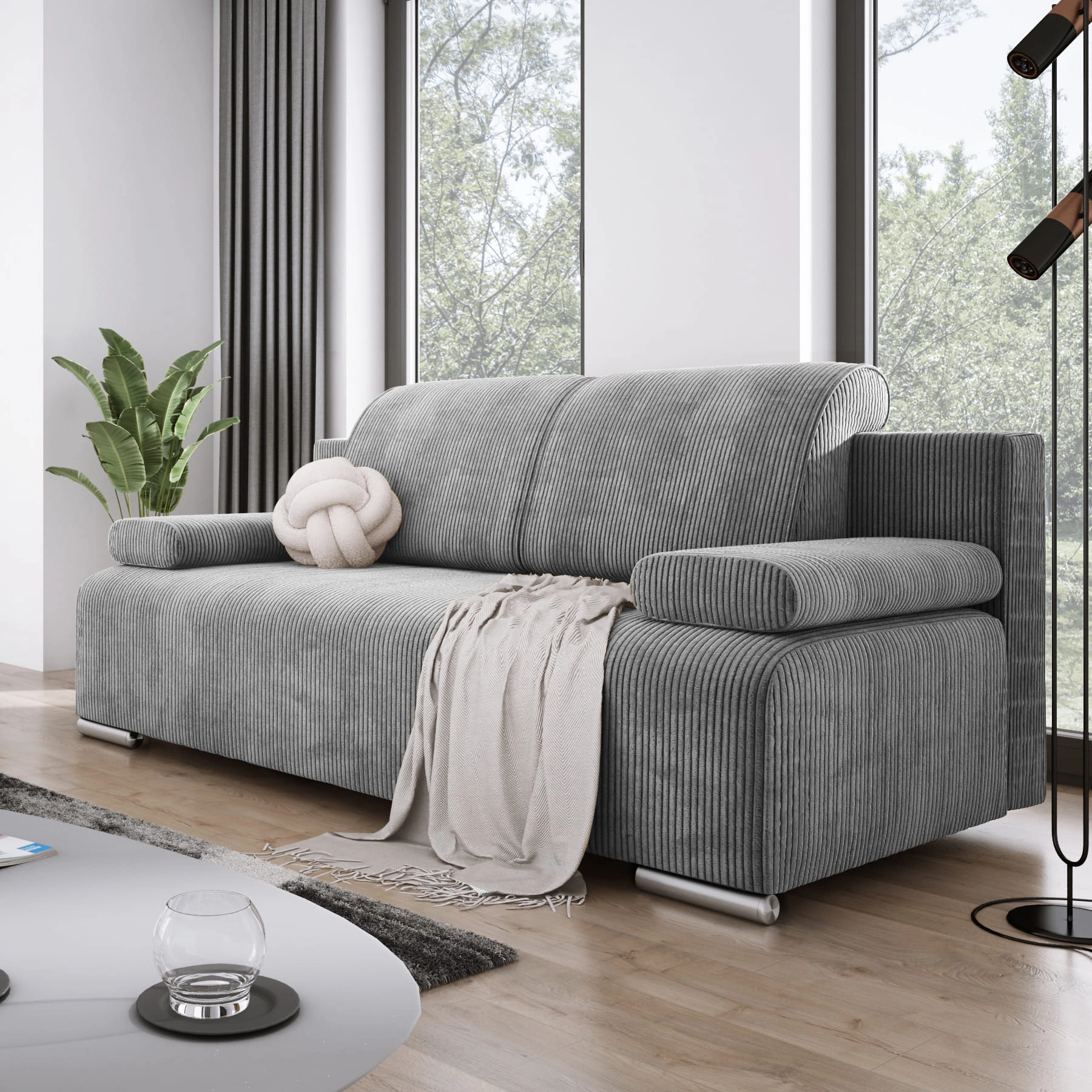 Jasnoszara kanapa z funkcją spania i pojemnikiem BONA sztruks