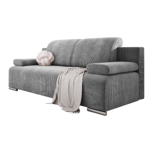 - Sztruksowa struktura w jasnym szarym wydaniu – gruby splot prążkowanej tkaniny genialnie pracuje ze światłem, nadając meblowi trójwymiarowości i wyjątkowej miękkości.