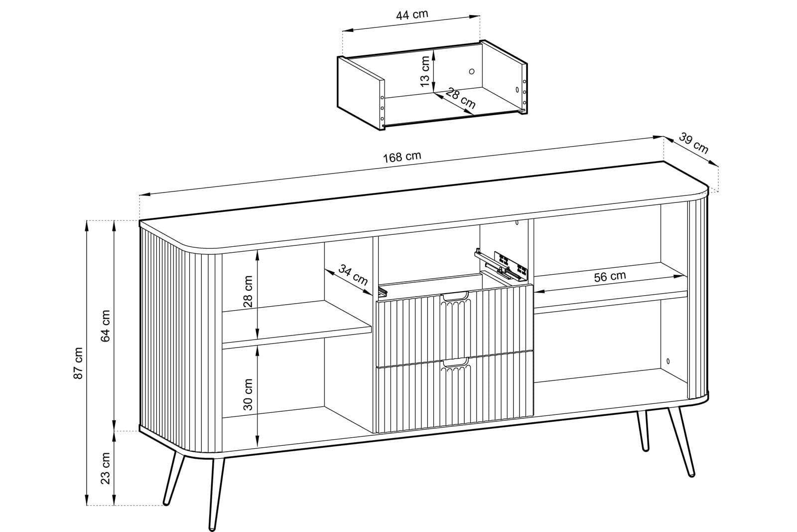 Komoda ryflowana z szufladami MOVA 168 cm