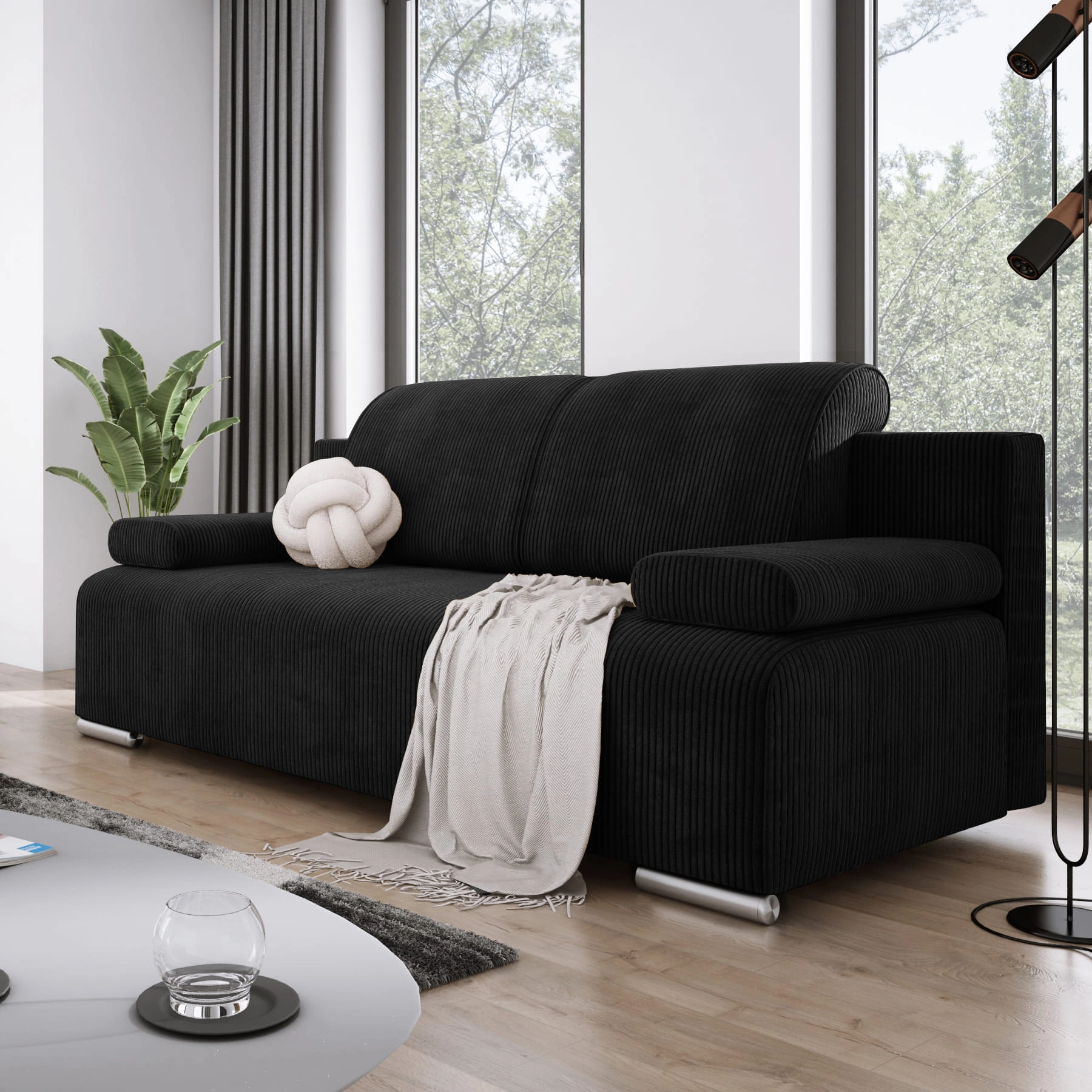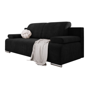 Czarna sofa rozkładana z funkcją spania BONA - miękki sztruks w kompaktowej formie